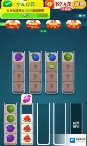 2、部分杯子中有一些带有问号的方块,将最上方的方块移开后就会自动出现。