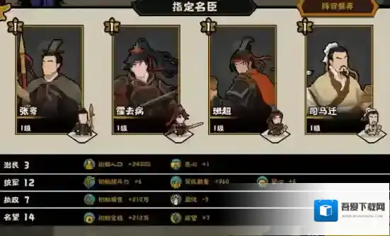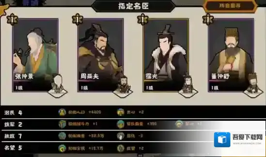 第二个便是以周亚夫和霍光和核心的低腐化阵容,董仲舒的天人三策使用上限也是极高的,当然民生位和贤者位也可以调换为更为合适的低腐化阵容,以发挥最大功效。
