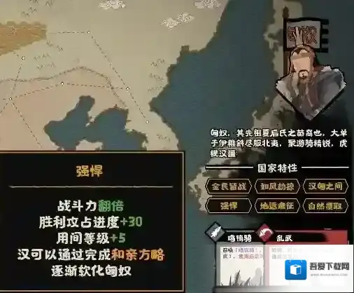 剧本更好的匹配汉初期汉弱匈奴强的时代特点,匈奴在剧本开始的时候就会设定拥有诸多效果,比如战斗力翻倍、高用间等级、诸多兵法和BUFF。
