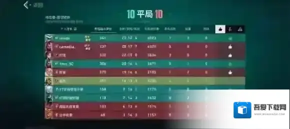 7、完成对决之后就会有对局统计,每一局的表现都会有详细的数据统计,可以在对局结束之后查看。