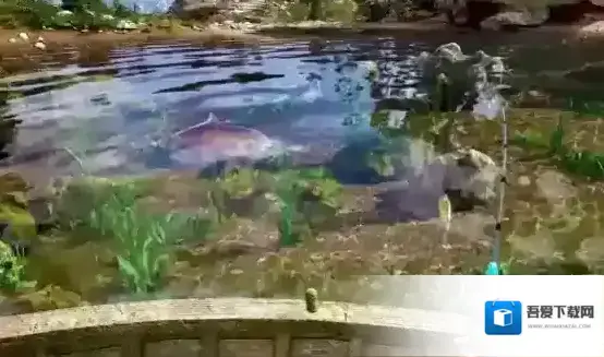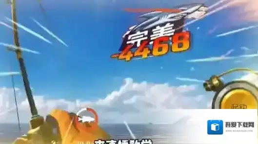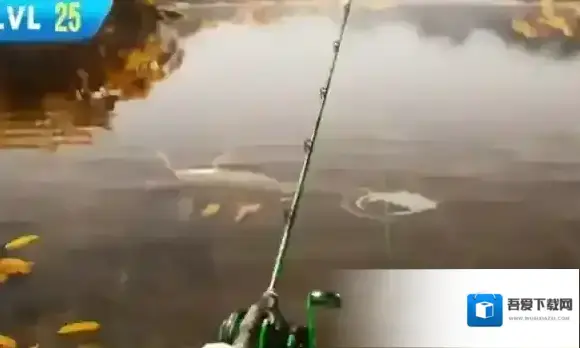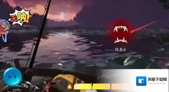3、等待鱼儿咬钩,一旦有鱼咬钩,迅速长按右侧的操作键进行钓鱼。