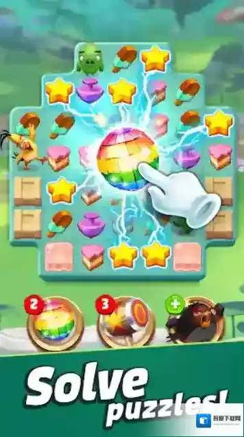1、轻松畅享消除乐趣,经典有好玩的三消挑战,匹配4个或更多的道具,解决愤怒的小鸟,顺利过关!