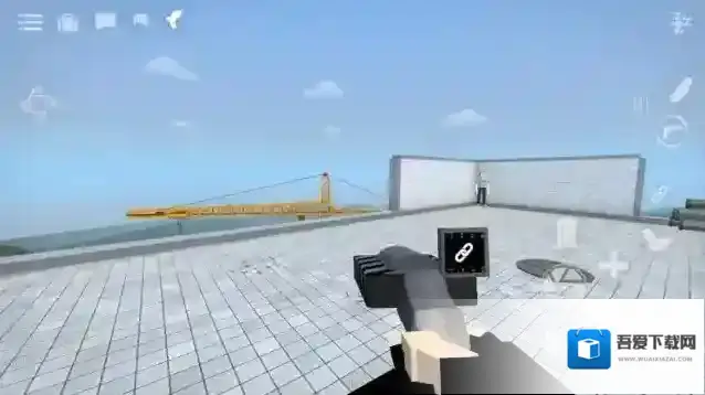 4、点击右边“手枪”按钮拿枪,可以让角色切换到持枪状态,中心用于开枪,+号可以新增靶子角色。