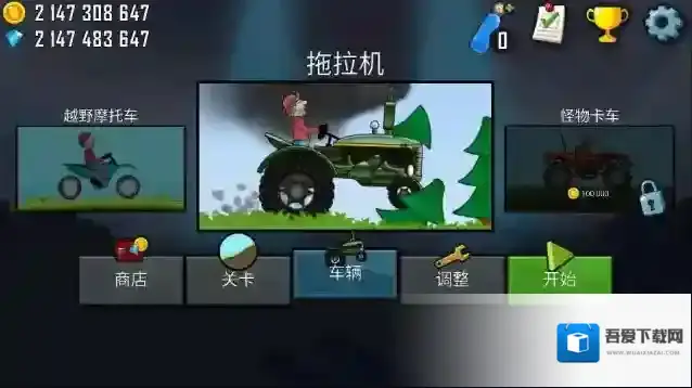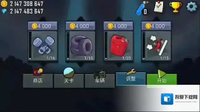 游戏难度会根据里程数提升。玩家在游戏中赚取的金币可用于购买新车、新关卡和升级汽车零件。