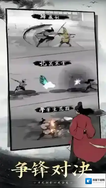 3、江湖中有诸多英雄好汉可以去选择切磋,每一位角色都有独特的招式等你去挑战。