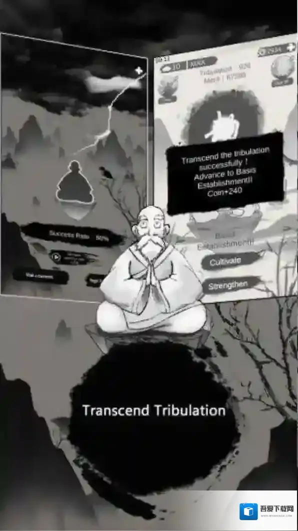 2、静心状态运用:当虫子密度过高时,长按屏幕进入静心状态,此时经文变为全屏扩散攻击,但老和尚自身无法移动,需预判安全区域。