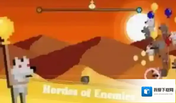 3、前行时,遇悬崖(箭头指的),提前跳跃跨越,避开掉落危险,还要躲狼、炸弹等威胁,推进关卡。