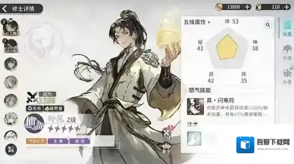 5、底部修士按钮进入角色界面,可进行升级、突破等养成操作。