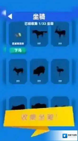 3、查看“收集坐骑”界面,通过捕获动物解锁新坐骑,更换坐骑继续冒险。