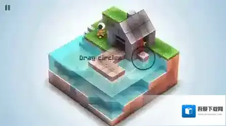 2、接着,翻转场景,此时会出现一个新的圆圈,圆圈内有一个机关,将这个机关移动到地面这边,并踏上它。