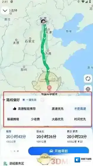 《高德地图》选择走国道方法