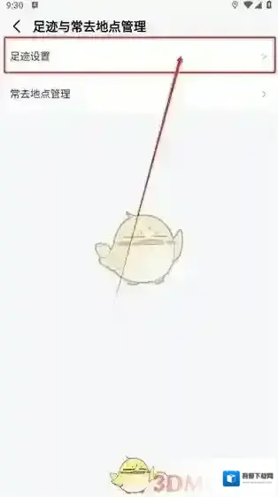 3、进入设置页面找到“足迹与常去地点管理”功能。