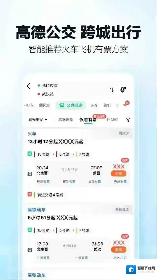 -高德公交,跨城出行,智能推荐火车飞机有票方案