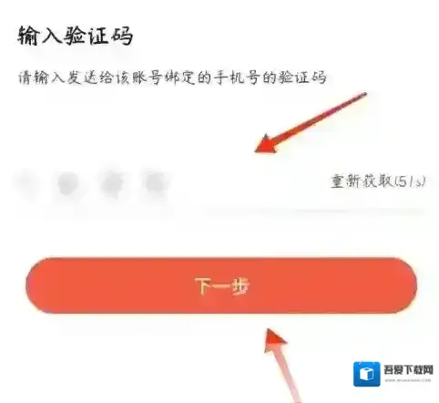 第六步:在输入框中输入验证码,界面中找到下一步;