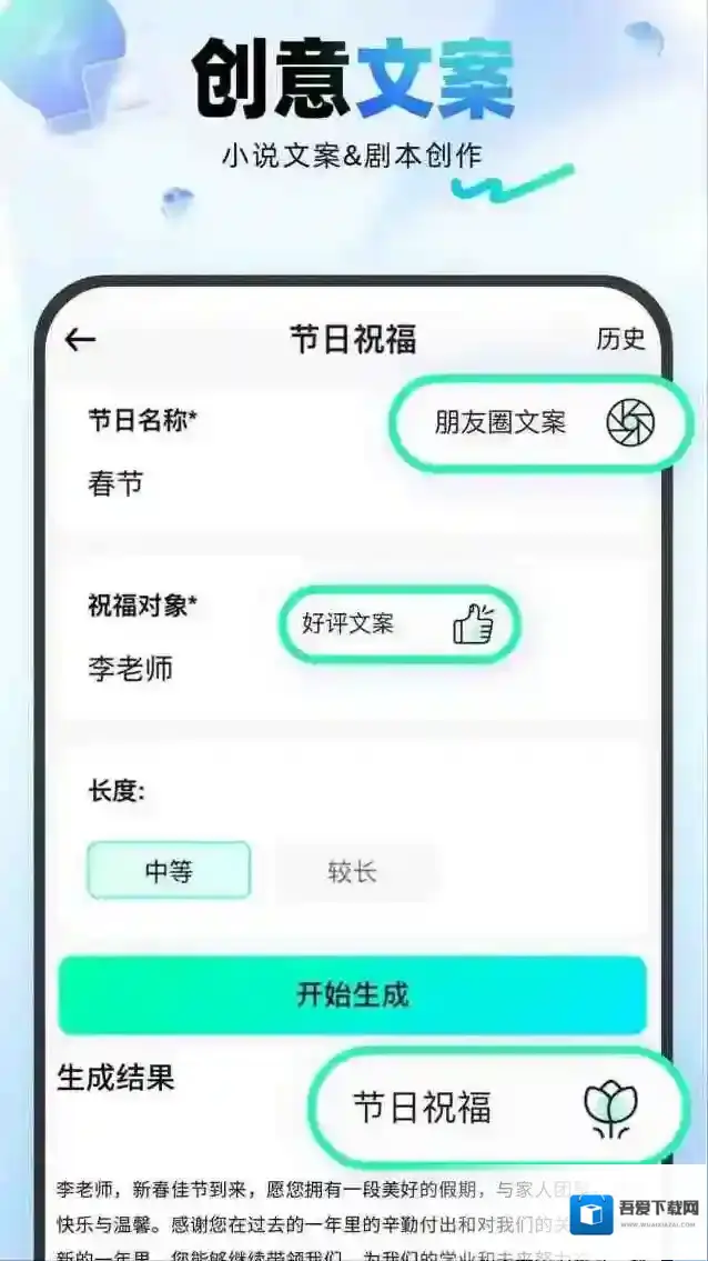 1、进入app之后,点击“全文生成”,可以快速快速生成你想要的模版。