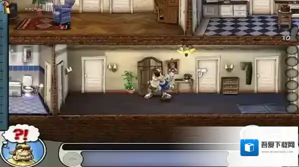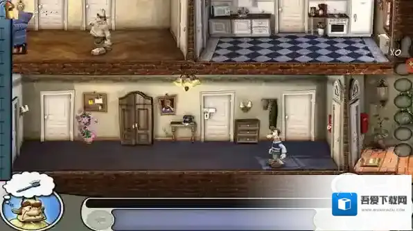 5、前往门厅,利用电视天线,并将快乐软垫放置在沙发上。稍后,你将看到邻居被整蛊的场景。