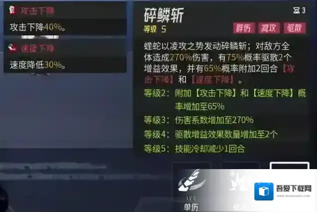 蝰蛇的3技能是个很好的debuff技能。可以降低boss的输出和速度