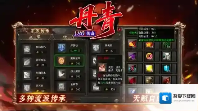 丹青180传奇,复古三职业版本,经典九流派玩法,原汁原味再续情怀!本服拥有百套特殊以及专属装备可以自由的进行搭配,所有的装备均有爆率,花时间你就能够追梦!游戏内每种职业均有三种不同流派,攻略首领级怪物即可获得书页,书页可以用来学习流派技能,提升实力!全新独立天赋系统给你更多激情,完成主线任务可获取天赋点,天赋点可学习天赋技能,无任何氪金门槛,可以免费学满所有天赋!