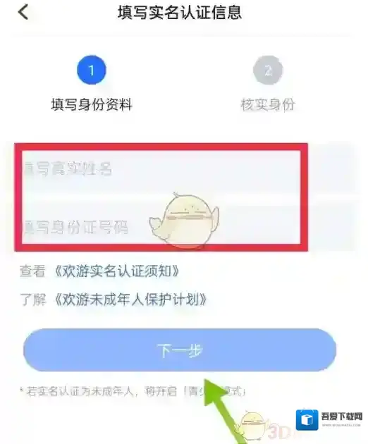 5、输入你的姓名与身份证号,最后点击下一步即可。
