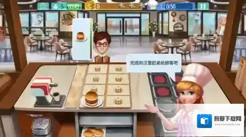 8. 最后,将制作好的汉堡拖动给顾客,顾客满意后即可获得金币奖励。