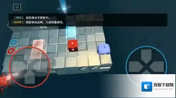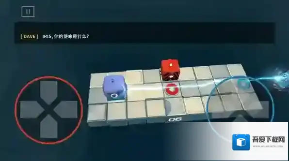 3、进入关卡后左边是控制红色机器人移动的摇杆,右边是控制蓝色机器人移动的摇杆。
