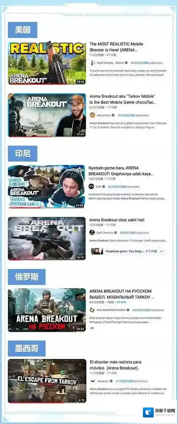 《暗区突围国际版》广受欢迎内容与二创层出不穷《暗区突围国际版》受到各国玩家喜爱,不仅是相关内容的点击格外火热,更有多才多艺的玩家根据游戏进行了二次创作,大家一起来看看吧!多国玩家试玩评测视频