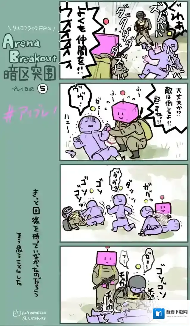 Tiktok单支短视频收获了百万播放,其受欢迎程度直线飙升,时长00:30主打真实战场、严肃军事美学的暗区突围,在玩家笔下变成了另一种画风。日本玩家创作的四格条漫小故事