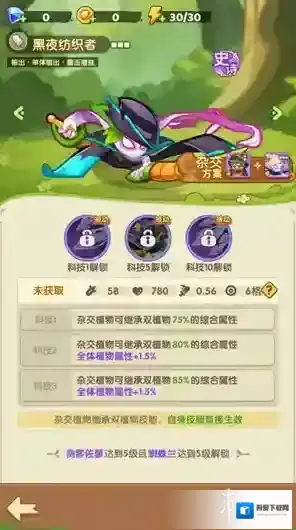 1、等级5:所有物理植物属性 +2.5%可与剑客佐萝杂交合成黑夜纺织者。