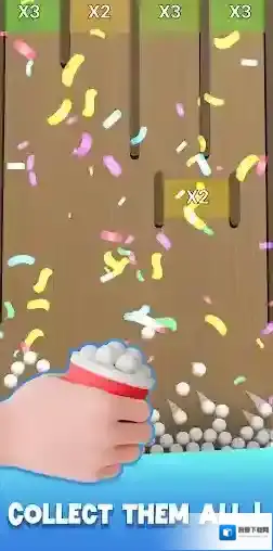 收集弹球(Bounce and collect),也可以叫做弹跳并收集,是由Voodoo出品的一款休闲解压小游戏。玩法十分简单,通过找寻合适的位置来倒下,通过各种带有算式的障碍物,然后来不断增加小球的数量,最终会根据你收集的小球数来决定奖励和排名数!游戏内有着非常丰富的关卡可以去挑战,每一关都有着不同的障碍构造,精准度和策略非常的重要,选择好最佳的路径才能帮助你获得最高的倍数,得到更多数量的小球!