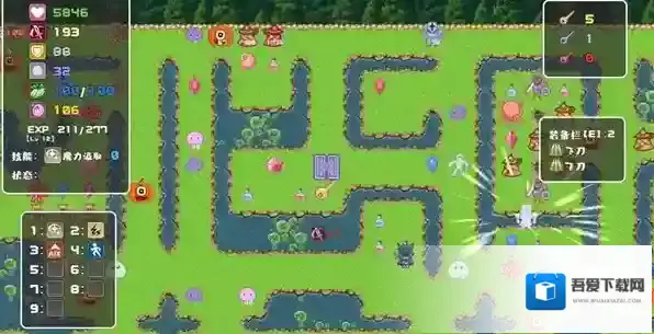3、屏幕左上方是你的角色属性,当你的攻击力大于怪物数字时可以无伤击败。
