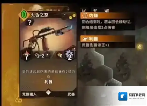攻击:7。射程:1~2。范围:单格。耐久:2。冷却时间:1回合。有特殊效果。