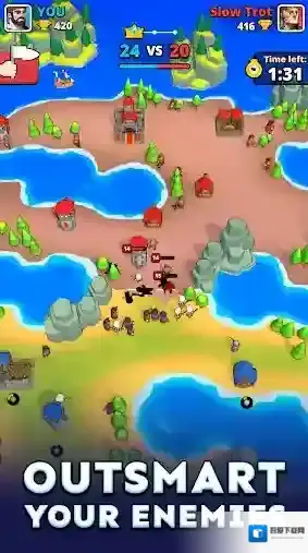 小小冲突(Tiny Clash!),由知名厂商Voodoo所推出的一款休闲塔防类手游。玩家将会踏入一个充满了战斗的惊险世界当中,与来自世界各地的玩家们展开激烈无比的1v1对战,在自己的领地上建造和部署各种独特的建筑,派遣各种强大的单位去进攻对手的领地,消灭所有敌人并占领对手的区域,取得最终的胜利!不断的去收集更多的资源,解锁更多的建筑和士兵,战胜更多强大的对手!