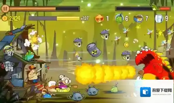 沼泽激战(Swamp Attack),充满了美式夸张风格的一款2D横版射击塔防游戏。游戏中的主人公生活在一片森林中,在他的小木屋周围有一片沼泽,沼泽中有着许多动物,随时都准备来围攻小木屋,玩家需要扮演主人公,拿起手中的枪械来保护小木屋,守住自己的领地!游戏诙谐幽默的风格正是吸引人的特色之一,例如主角虽然深陷包围,却也是从容的坐在小板凳上悠闲打靶,而且手持各种武器还会出现不同的呆萌表情,非常的有趣。游戏内有着丰富的关卡可以去挑战,并随着挑战还能用金币去升级武器提升战力,迎接更多的挑战!